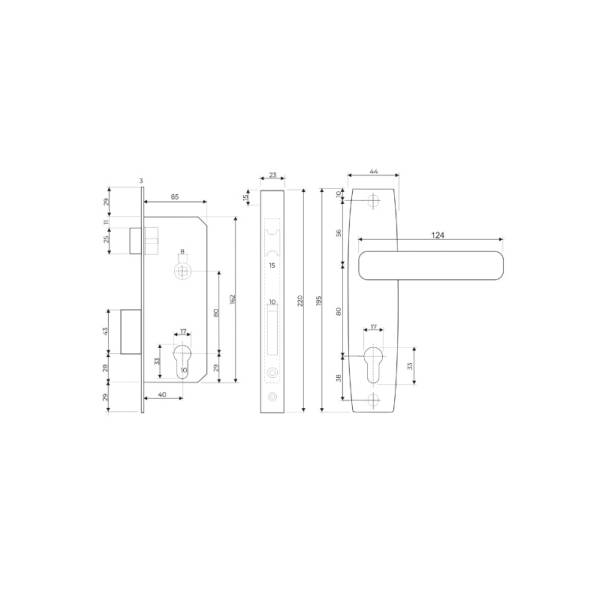 ригель один, прямоугольный, вылет ригеля 24 мм,