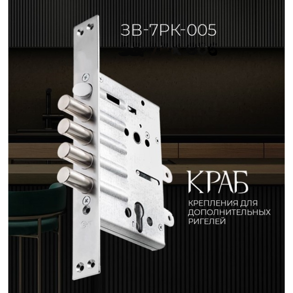 Врезной замок серии РК - Крит (Crit) ЗВ-7РК-003-Хп с тягами, покрытие планки в цвет хром.