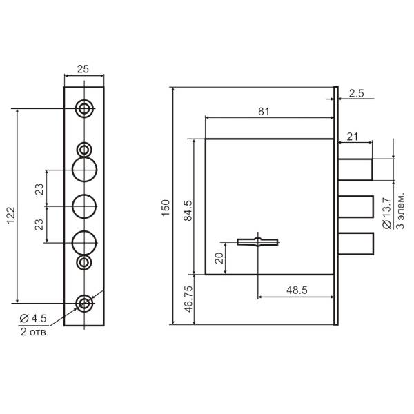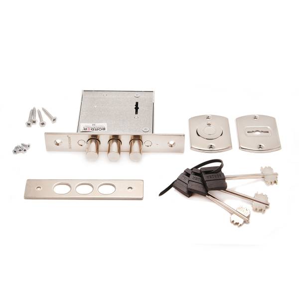 В комплекте с корпусом: 3 ключа с пластиковой головкой, запорная планка, запорная планка, комплект накладок.