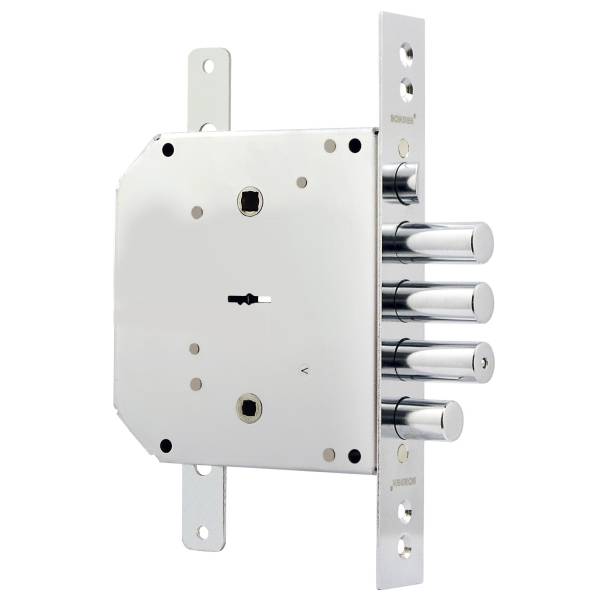 Отсутствие в корпусе замка деталей из пластиков и легких сплавов позволяет использовать замок в противопожарных дверях.