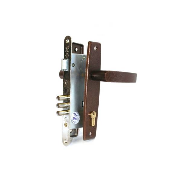 Технические характеристики: корпус цилиндровый; межосевое расстояние - 85 мм; вылет ригелей - 22 мм; диаметр ригеля - 10,7 мм. Засов из трех стальных стержней круглого сечения. Покрытие корпуса цинковое. Покрытие лицевой и ответной планок никелевое.