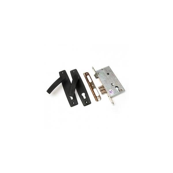 Замок врезной ПроСам 78401 ЗВ4-3 ручки+мц /СП11.РФ7-010.60-3.Ш2 (черный, защелка, 3 ригелей) цилиндровый с защелкой и фалевыми ручками.