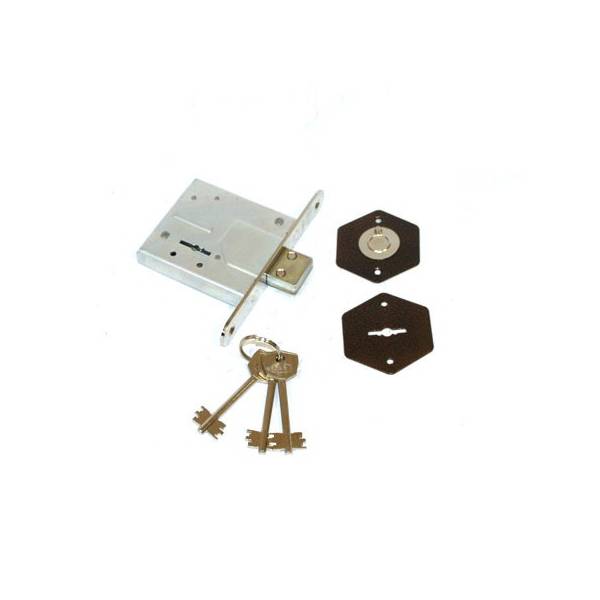Замок Врезной ПроСам ЗВ8 сувальдный /03.НШ-002.Ш.З (6-сувальдный, прямоугольный ригель, 3 ключа). Замок врезной 6-сувальдный. Предназначен для установки в металлические и деревянные двери толщиной 40-50 мм и металлические шкафы. Замок универсальный, возможна установка как в правые, так и в левые двери. Комплектуется 3/5 стальными ключами. Замок дверной открывается и закрывается изнутри и снаружи ключом. Выпускается в двух исполнениях: с прямоугольным засовом (ЗВ8-6/0) и с засовом из трех стержней круглого сечения (ЗВ8-6/1). Покрытие корпуса замка ? цинковое. Покрытие лицевой планки ? никелевое, ответной планки ? цинковое. Замок дверной имеет защиту от высверливания. Изготовлен из высокопрочных материалов. Имеет защитное покрытие. Фурнитура к дверному замку: НК, НШ. 6-сувальдный; 120000 секретов; вылет ригеля ? 21 мм; количество ключей ? 3/5; габаритные размеры 82х75х15; защита от отмычек. Модель ЗВ 8-6/03 НШ-002. Накладки шестигранные "медный антик". Длина ключа/кол- во ? 70/3. Количество в транспортной упаковке/вес(кг) ? 30/15,29.