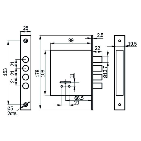 Технические характеристики: 250000 секретов; вылет ригелей 22 мм; диаметр ригеля 13,7 мм; количество ключей 3/5; габаритные размеры 99х108х21; защита от отмычек.