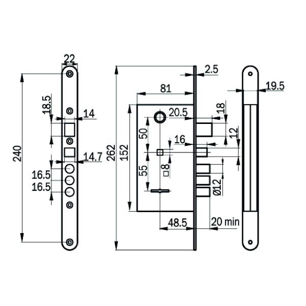 88011 Замок врезной ЗВ9-8.З (левый, медь) 3 кл. Просам