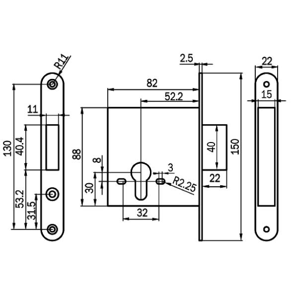 Замок врезной ПроСам ЗВ1 цилиндровый модель 89700 ЗВ1-2БМ/01 с прямым ригелем, без механизма цилиндрового, класс 2 ГОСТ 5089-2011. Корпус замка сохраняет характеристики класса только при использовании их с механизмом секретности соответствующего класса.