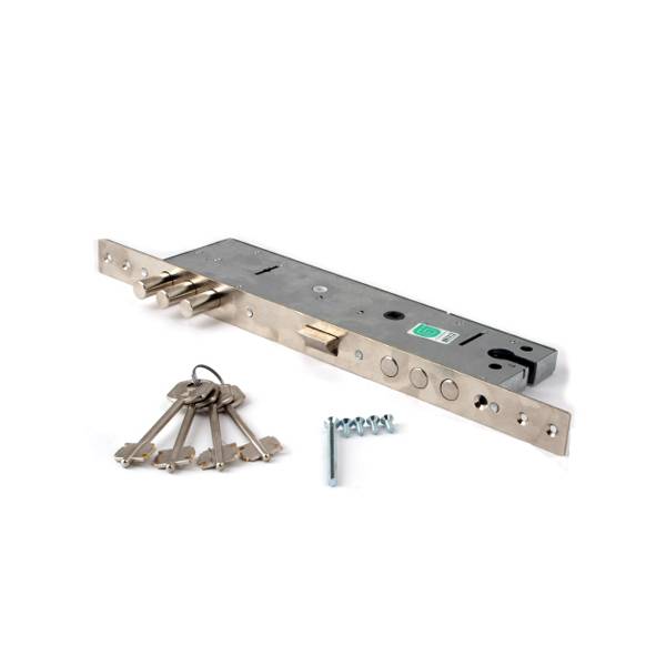 Корпус с отверстием под цилиндровый механизм, сувальдный механизм и фалевые ручки.