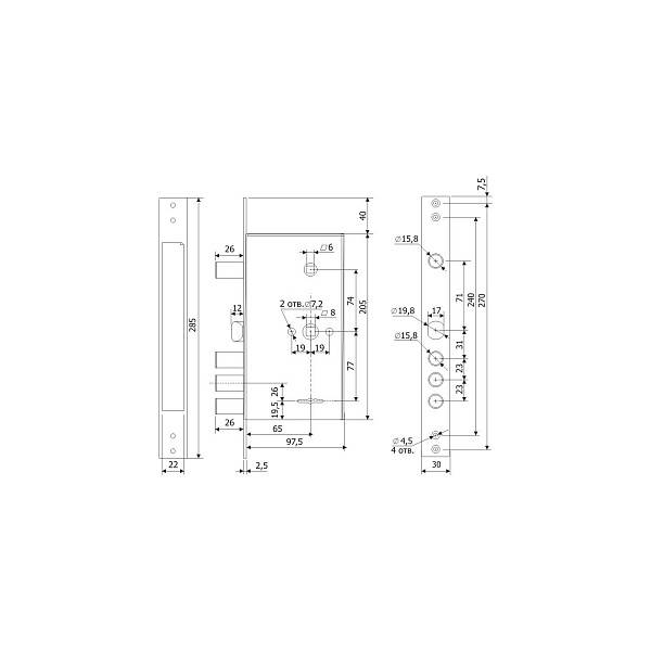 При полностью выдвинутых ригелях замка, 30% их длины остается в корпусе замка, усилена конструкция засовов.