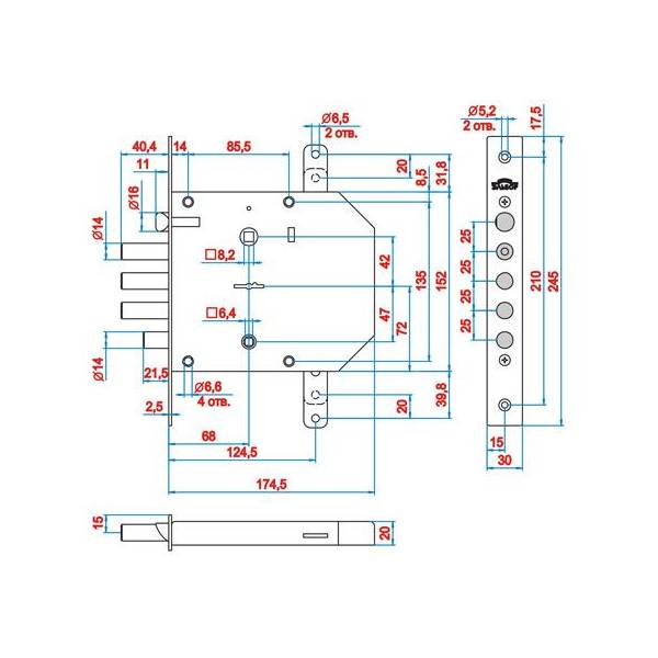 Замок врезной сувальдный 1.05.42.5.1 (универсальный, с тягами) Базальт Эльбор. Замок врезной для дверей любого типа. При полностью выдвинутом стержне задвижки блокируется сувальдный механизм. Соответствует 4 классу ГОСТ Р 52582-2006. Кодовый механизм сувальдного типа обеспечивает более 1,5 млн. комбинаций. Габаритные размеры 172х128х20 мм; Механизм секретности замка сувальдный; Количество сувальд 6 шт; Количество кодовых комбинаций более 1,5 млн.; Диаметр стержня 14 мм; Выход стержней 40 мм; Общая площадь поперечного сечения стержней 615,44 мм2.