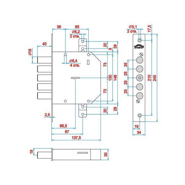 Габаритные размеры корпуса замка: 135х146х30 мм;
