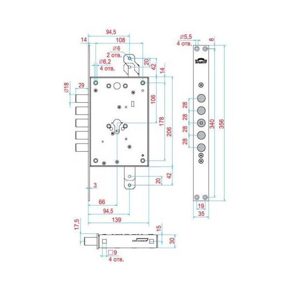 Замок врезной ЗВ 1.08.12 Рубин Эльбор. Врезной замок для бронированных и металлических дверей усиленной конструкции. Особенности: Наличие распорных втулок в корпусе замка увеличивает его жесткость и исключает зажатие сувальдного механизма при установке врезного замка в дверь. В корпусе врезного замка предусмотрены отверстия для установки различных моделей броненакладок в качестве защиты цилиндрового механизма. Замок врезной для металлической двери имеет уникальную защиту от выбивания цилиндрового механизма. В случае выбивания цилиндрового механизма срабатывает защитный внутренний элемент, блокирующий засов врезного замка в закрытом положении. Таким образом, дверь остается закрытой и злоумышленник не может попасть внутрь. Внимание! Для избежания несанкционированной блокировки дверного замка никогда не вынимайте цилиндровый механизм из корпуса замка, находящегося в закрытом положении (стержни выдвинуты из корпуса замка). Замену цилиндра производить только при открытом замке (стержни полностью убраны в корпус замка). Соответствует 4 классу ГОСТ 5089-2003. Технические характеристики: Габаритные размеры 136х206х30 мм; Механизм секретности замка цилиндровый; Диаметр стержня 18 мм; Выход стержней 29 мм; Общая площадь поперечного сечения стержней 1271,7 мм2; Класс замка 4 класс по ГОСТ 5089-2003; Масса брутто одного замка 2.44 кг. Количество штук в упаковке 5. Комплектация: замок в сборе, руководство по эксплуатации.