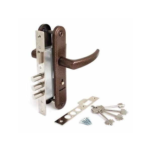 Замок врезной Гардиан ЗВ 10.11 в комплекте с ручками на планке.