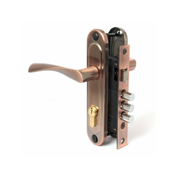 Замок врезной ЗВ 1023/60-АC медь Apecs в комплекте с ручками и цилиндровым механизмом 60 мм.