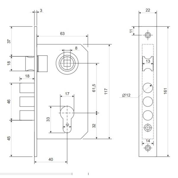 Замок врезной 1027/60-АВ (бронза) APECS. Замок врезной с ручками общего назначения, предназначен для запирания деревянных дверей, толщиной не более 50 мм. Комплектуется евроцилиндром 60 мм, 5 английских ключей. Межосевое расстояние 61.5 мм, удаление ключевого отверстия 40 мм. Материал ручки - алюминий. Цвет - бронза.