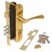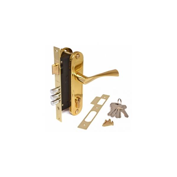 Замок Апекс 1523 комплектуется ручками и цилиндром. Материал ручки алюминий; Покрытие ручек гальваническое; Цвет покрытия золото.