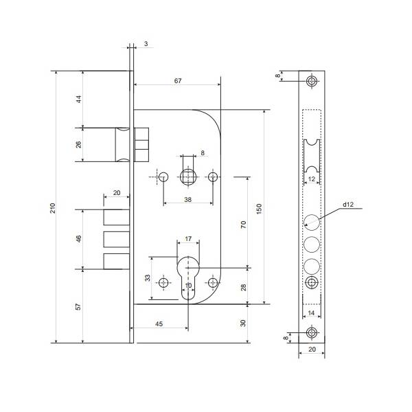 Технические характеристики: Удаление ключевого отверстия (Backset) 45 мм; Межосевое расстояние 70 мм;