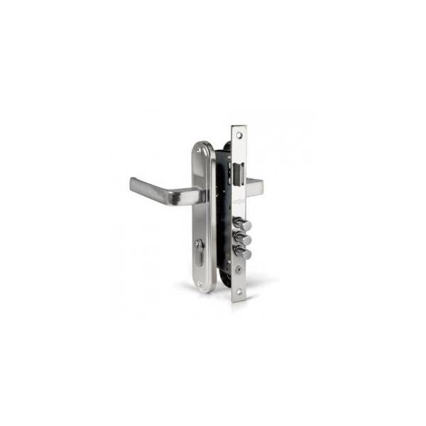 Замок врезной Apecs 1526/60-CR. Технические характеристики. Тип упаковки коробка. Назначение общее. Рекомендован для установки в входные двери. Рекомендован для установки в межкомнатные двери. Тип крепления лицевая планка. Тип ригелей цилиндрические. Количество ригелей 3. Вылет ригелей 20 мм. Диаметр ригеля 12 мм. Удаление ключевого отверстия (Backset) 45 мм. Тип механизма секретности замка цилиндровый. Тип цилиндрового механизма евроцилиндр. Тип ключа английский. Количество ключей 5. Механизм постоянного ключа отсутствует. Комплектация цилиндром. Типоразмер цилиндра 30/30. Материал цилиндра латунь. Покрытие цилиндра гальваника. Цвет цилиндра никель. Дополнительный механизм секретности отсутствует. Защелка классическая. Тип защелки универсальная. Межосевое расстояние 70 мм. Комплектация ручками. Способ установки ручки саморезы. Материал ручки алюминий. Покрытие ручек анодирование. Цвет ручки хром. Неавтоматическое запирание. Количество точек запирания 1. Дополнительное запирание изнутри отсутствует. Покрытие лицевой планки гальваника. Цвет лицевой планки хром.