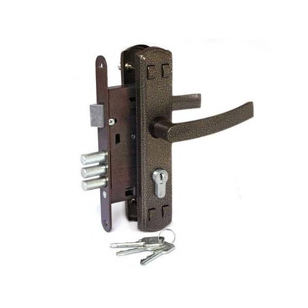 Замок цилиндровый врезной с защелкой, управляемой ручками, ЗВ 4-1-8-16 (коричневый с МЦ) Могилев, тип ЗВ4 ГОСТ 5089-2011..
