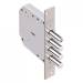 Технические характеристики: Замок врезной 6-ти сувальдный, 4 стержня диаметром Ф14 мм. Лицевая планка и стержни засова покрыты цинком. Удаление ключевого отверстия (Backset) 68 мм.