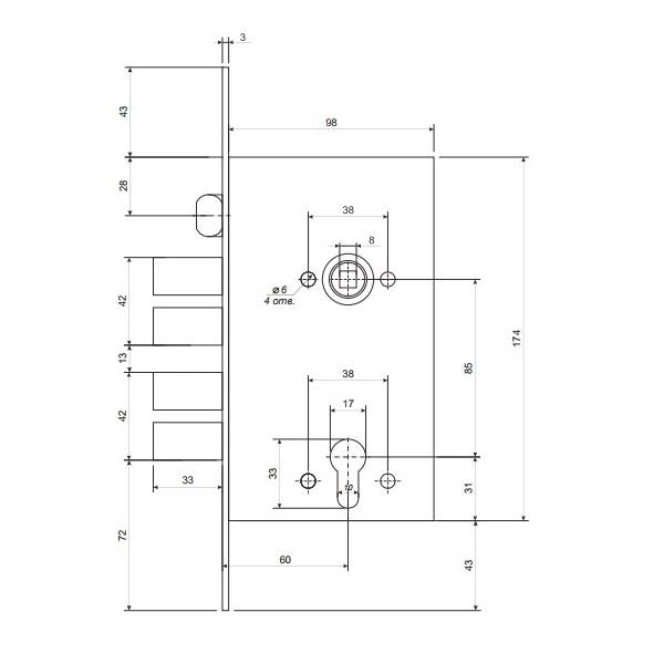 Удаление ключевого отверстия (Backset) 60 мм;