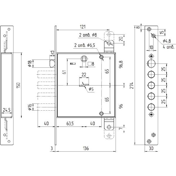 Габаритные размеры корпуса замка 274х139х30 мм.